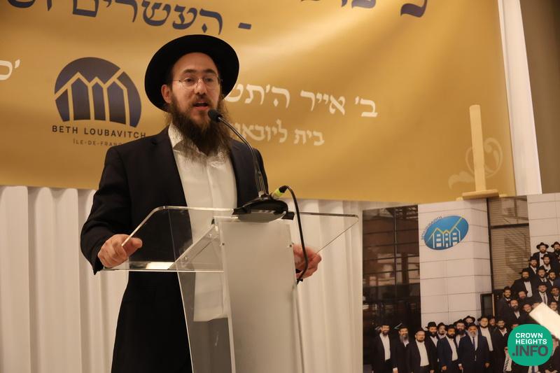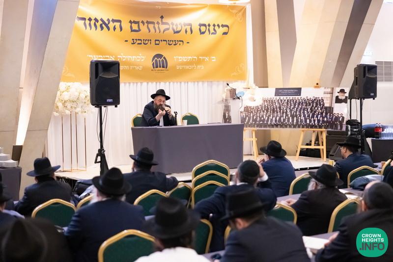 The gathering took place in the “Chaya Mushka” Hall and was led by Head Shliach to France, Rabbi Menachem Mendel Azimov. Participating in the event was Rabbi Menachem Mendel Kotlarsky of New York, Chairman of the International Kinus Hashluchim, who joined as a special guest.