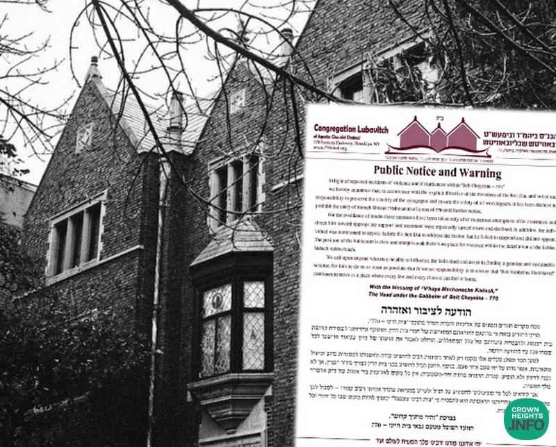 “The position of the Rabbanim is clear and unequivocal: there is no place for violence within the daled amot of the Rebbe,” the notice reads, emphasizing a zero-tolerance stance for disruptive behavior inside the movement’s central synagogue.