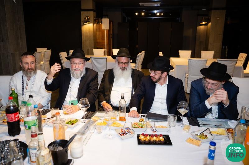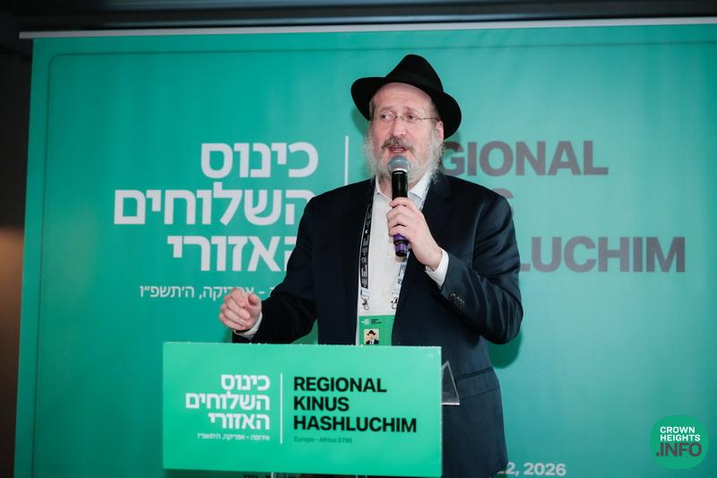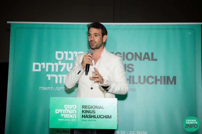 The evening program included a formal gathering emceed by Shliach to Istanbul Rabbi Mendy Chitrik, alongside opening remarks from Rabbi Ouziel Moshe Friedland and Rabbi Mendy Kotlarsky, emphasizing the urgency of the moment and the responsibility carried by each Shliach. Additional addresses were delivered by Rabbi Uri Medina and Rabbi Mendel Siboni.