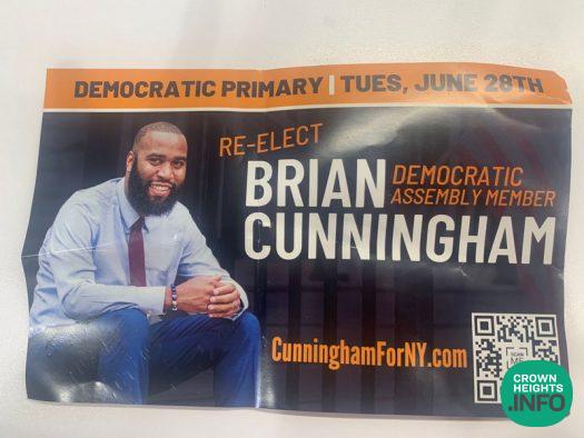Door knockers and pamphlets asked the Crown Heights community to come out and vote for Brian Cunningham in an election set for June 29th.