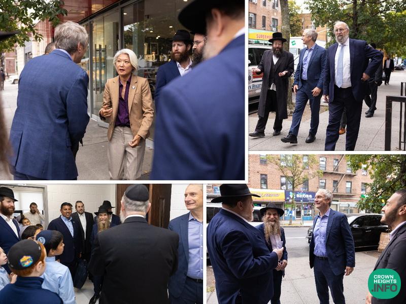 The delegation included State Senators Iwen Chu of Brooklyn, New York, Sean Ryan of Buffalo, and Jeremy Cooney of Rochester. They were joined by Rabbi Joel Rosenfeld of Bobov, and Rabbi Yeruchim Silber of Agudas Yisrael of America. Representing Crown Heights Jewish Community Council (CHJCC) were Board Members Meir New and Dovid Halon, alongside Rabbis Eli Cohen and Chanina Sperlin.