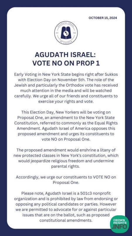 There are six proposals on the ballot in New York, and we want to share what Agudas Yisroel recently sent out. We will be joining fellow frum communities in New York in recommending that everyone vote NO on all the 2024 Proposals to avoid confusion and ensure clarity.
