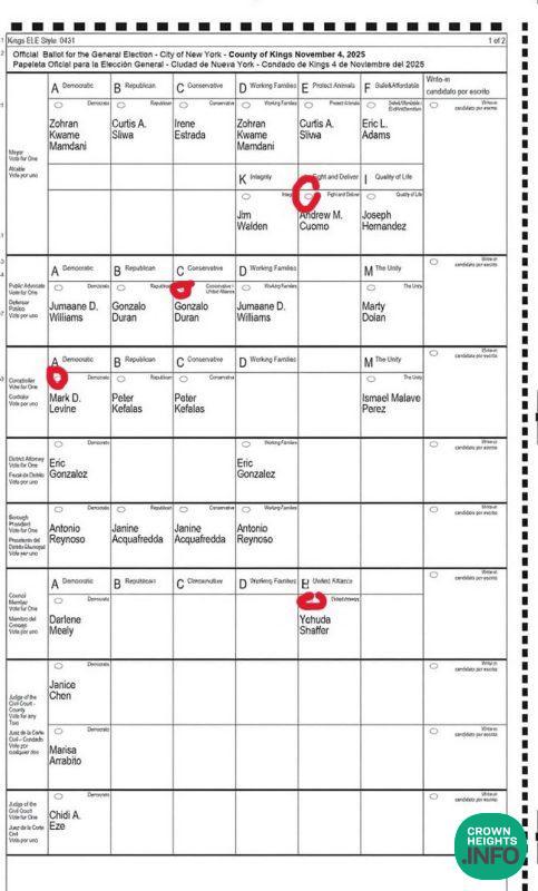 City Council: Yehuda Shaffer/Benny Rosenberger (whichever is on your ballot); If you don’t understand yourself, I can’t help you…