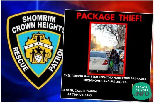 Crown Heights Shomrim has published an alert to the community advising of a new package thief that has come to town and has been caught shopping on the communities porches and buildings.