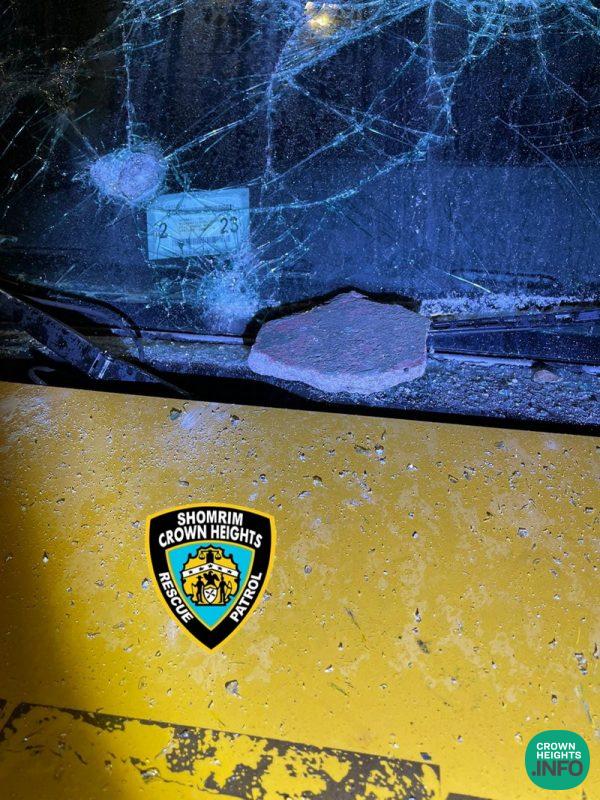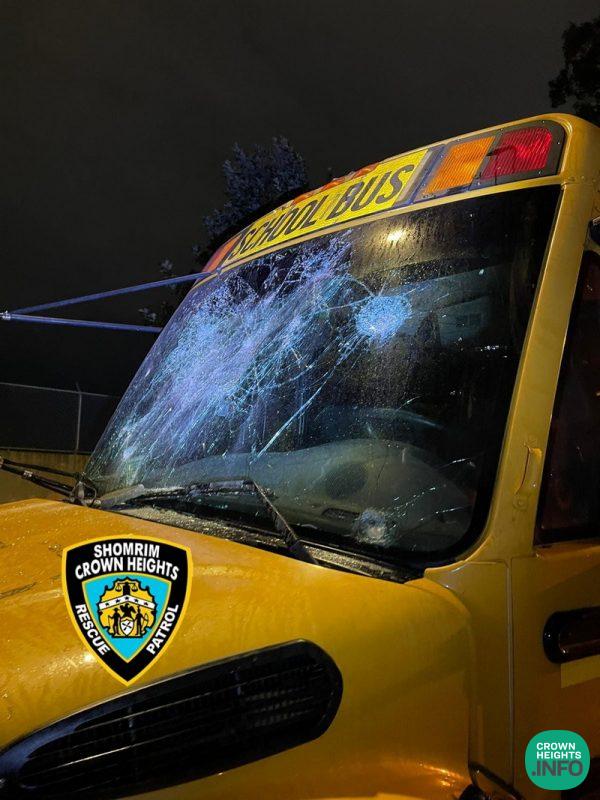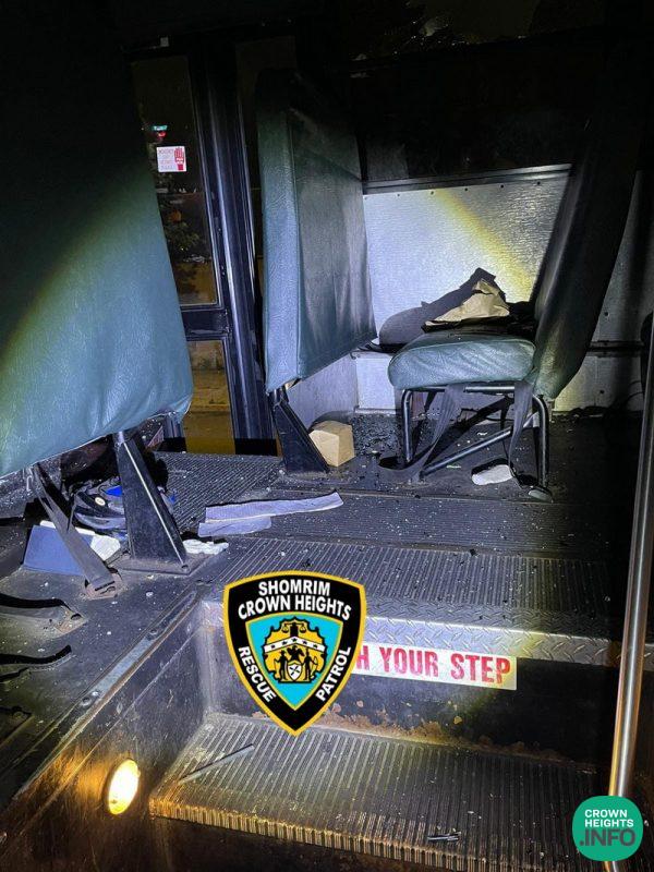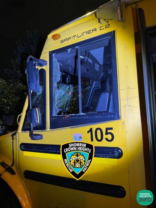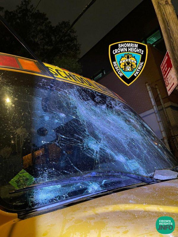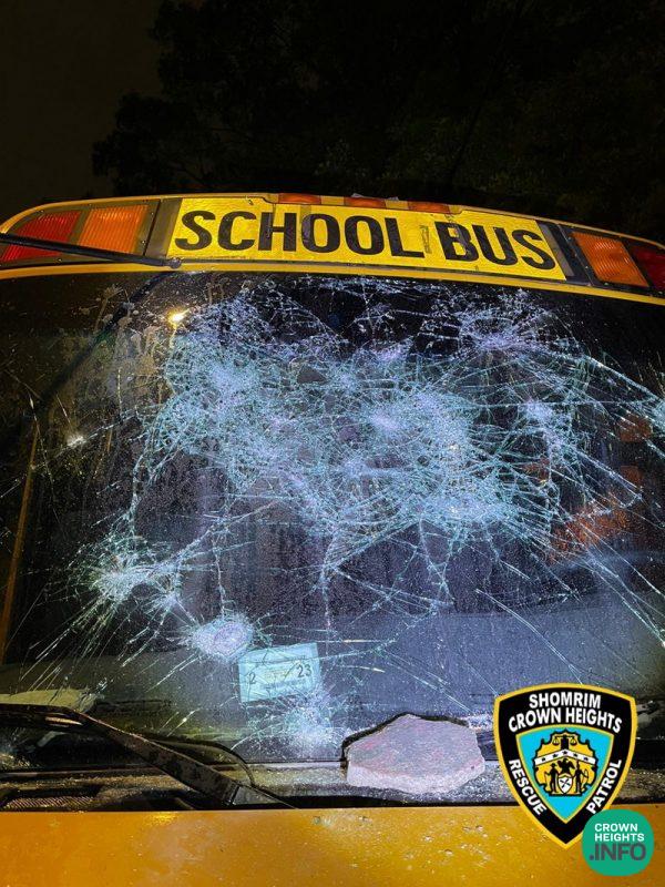 The bus, being rented by Can Yisroel CH, had been parked Thursday on Troy Ave near Maple Street when a group of what appeared to be teenage thugs began throwing large stones at the bus and beating it with sticks.