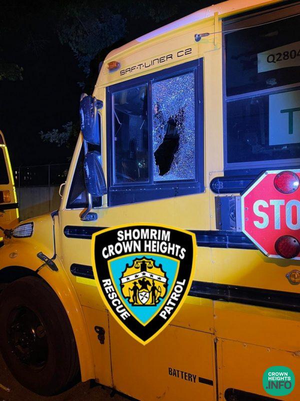 This is the second recent vandalism of a Jewish bus in Crown Heights, with a Bnos Menachem bus also being vandalized just a day before in front of their school.