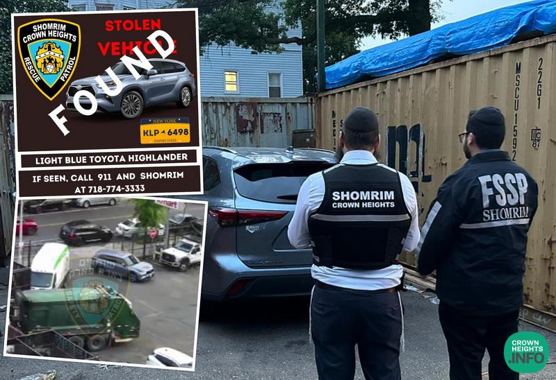 The initial call came into Crown Heights Shomrim Monday with a request for help after a vehicle, left with the keys in the car, was stolen in Crown Heights in the area of President Street and Bedford Ave. Initial attempts to track the vehicle were unsuccessful, and Crown Heights Shomrim put out a Stolen Vehicle flyer which was widely spread on social media.