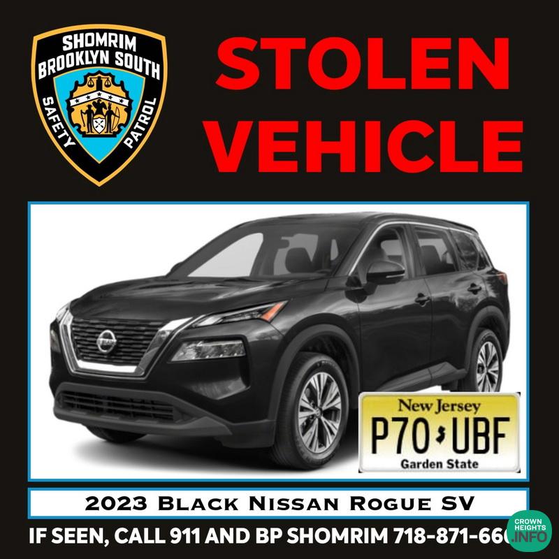 As the vehicle reached the Flatbush, a Crown Heights Shomrim volunteer caught up to a car matching the description of the stolen Black Rogue but with Texas plates, a suspicious sign for New York City.