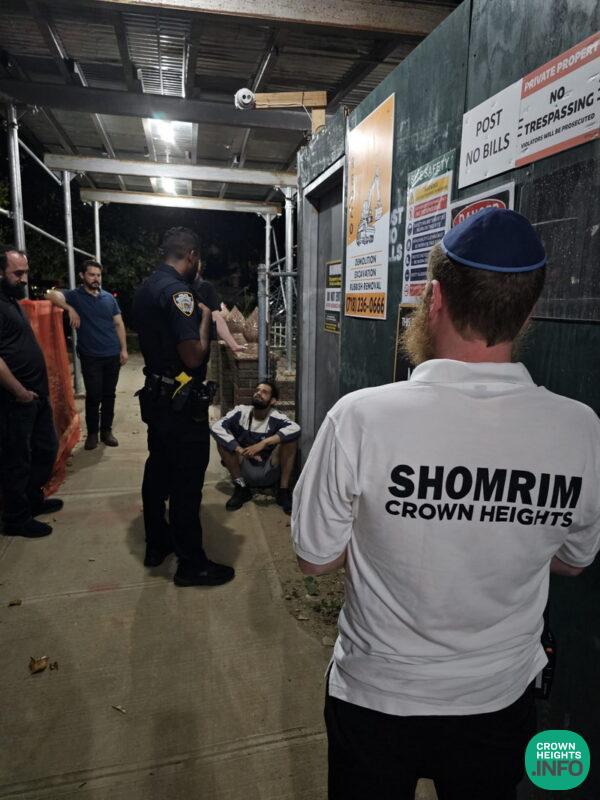Crown Heights Shomrim recieved the call around 11:20pm Tuesday night reporting the trespasser at a local construction site. Volunteers had surrounded the location in a matter of sixty seconds and the police were notified.