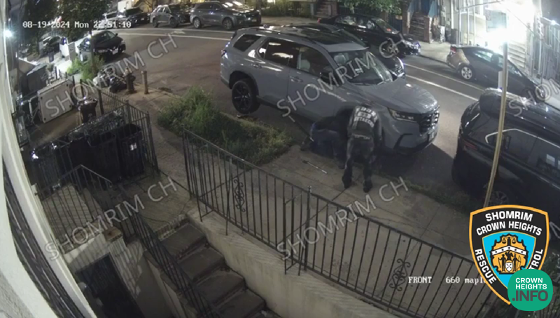 Crown Heights Shomrim has released video showing two perpetrators stealing all four tires off pf a parked car in Crown Heights. They are asking the community to help them investigate.