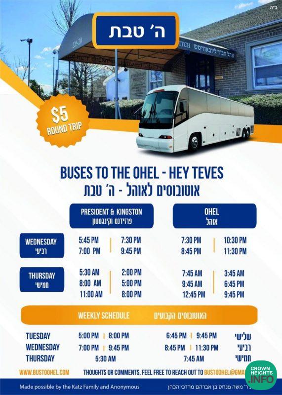 A discounted bus service making round trips between Crown Heights and the Ohel will be available throughout Hey Teves this year.
