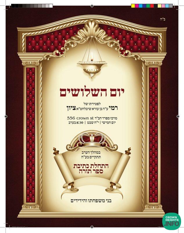The community is invited to join in the Shloshim event for Rami Zion OBM, taking place tonight, Thursday, 8:30pm at Merkaz Sefard 556 Crown Street.