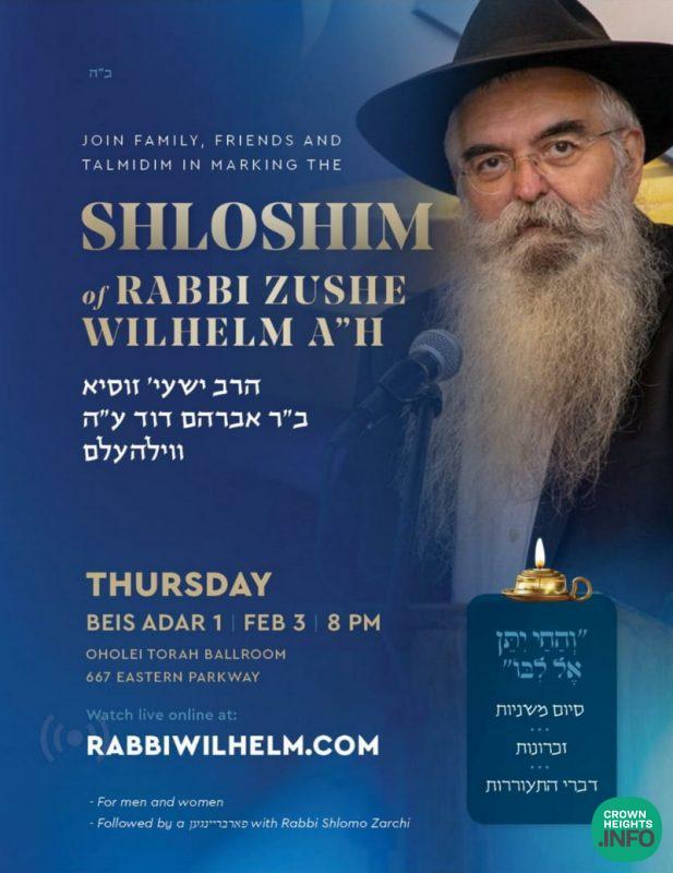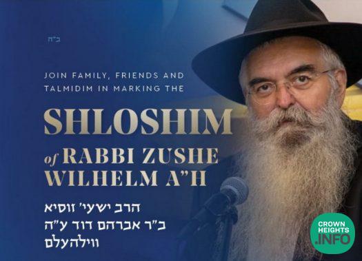 The community is invited to join family, friends and Talmidim in a Shloshim even in memory of Rabbi Zushe Wilhelm OBM.