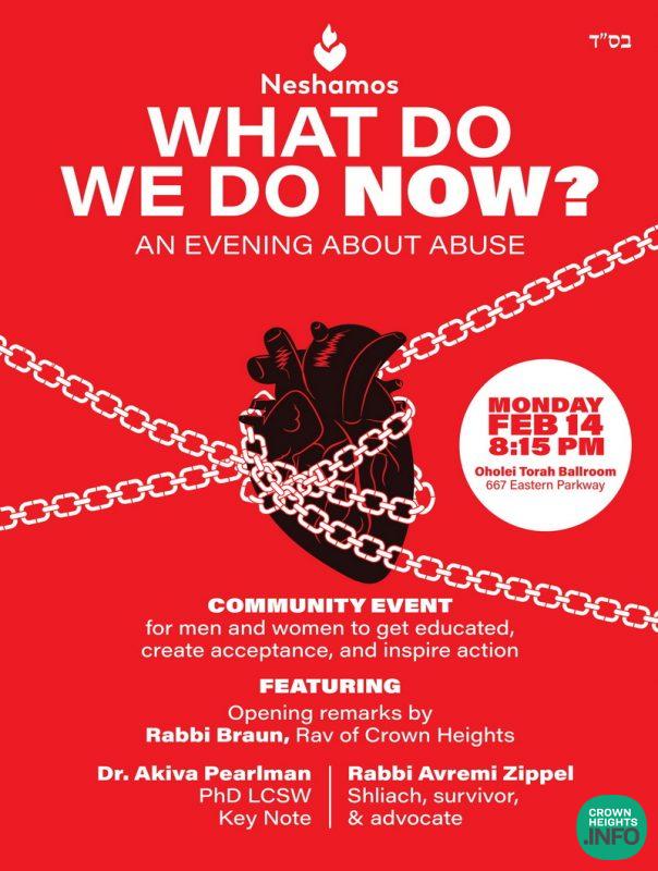 On Monday, February 14th*, Neshamos will be hosting a historic event. NOW is the time to show up for our victims, to lend your support and to raise awareness so that we can cause vital and significant change for our community.