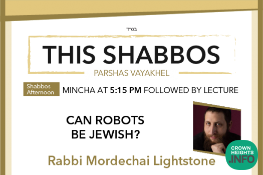 This Shabbos at the BESHT: Rabbi Mordechai Lightstone is the founder of Tech Tribe, an affiliate of Chabad Young Professionals serving Jews in tech and digital media, and the social media editor at Chabad.org. He will be giving a shiur this week on the question Can Robots be Jewish?