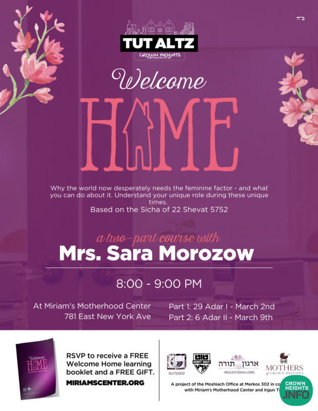 The Miriam Motherhood Center and Irgun Torah of CH partner with Tut Altz at Merkos 302 to launch the first-ever Tut Altz shiur for women in Crown Heights.