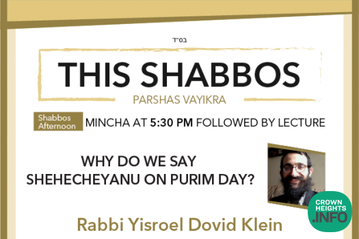 This Shabbos at the BESHT: Rabbi Yisroel Dovid Klein studied at Chabad Yeshivos in the UK and Miami before receiving his Smicha from Rabbi Faitel Levin in Melbourne, Australia. He currently writes for Chabad.org. He also gives regular shiurim at the Chabad house of Pratt Institute and Clinton Hill and is available for one on one learning sessions. He will be giving this weeks shiur titled “Why do we say shehecheyanu Purim day?”