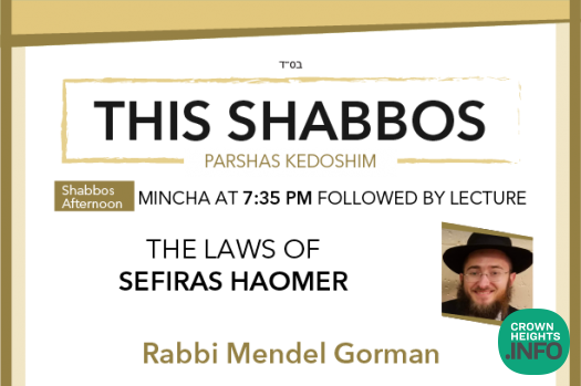 This Shabbos at the BESHT: Rabbi Mendel Gorman studied in the finest Yeshivos in Canada and Eretz Yisroel and received Semicha in 770. He is currently studying in Kollel Anash in Crown Heights. He will be giving this weeks shiur on The laws of Sefiras Haomer.