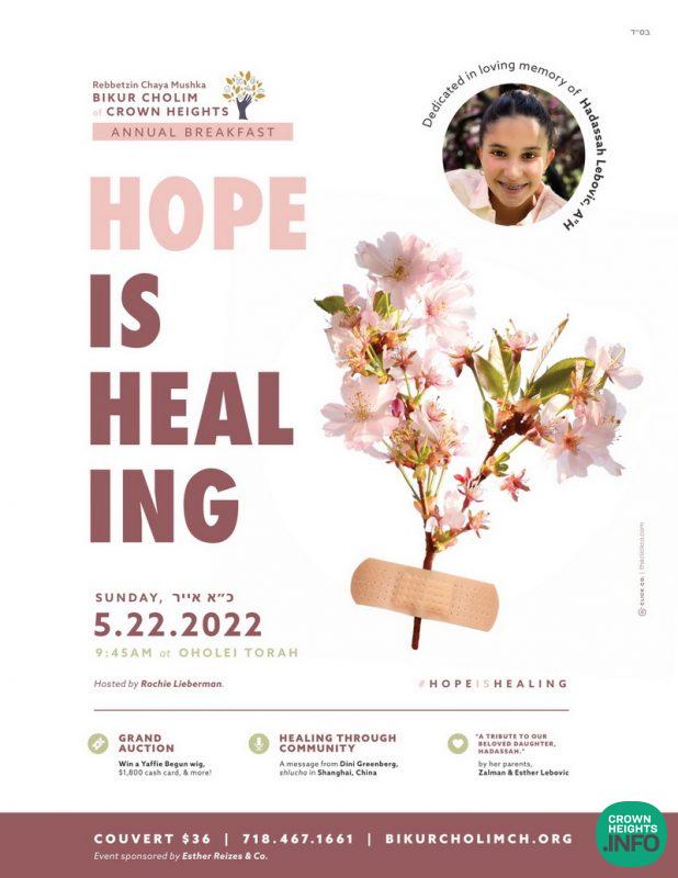 This theme will be on display at next week’s Annual Bikur Cholim Breakfast for Women. Titled “Hope is Healing”, the event will celebrate and honor Bikur Cholim volunteers and supporters, who are essentially good neighbors. It’s this type of care and kindness that builds a community of healing.