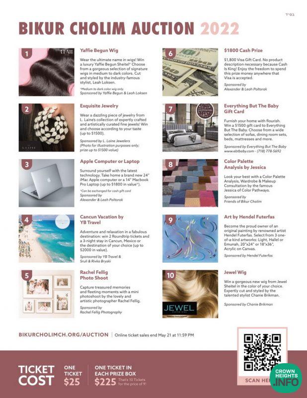 Support Bikur Cholim’s neighborly work by attending the event on Sunday May 22, and/or buying tickets for the auction at bikurcholimCH.org/auction.