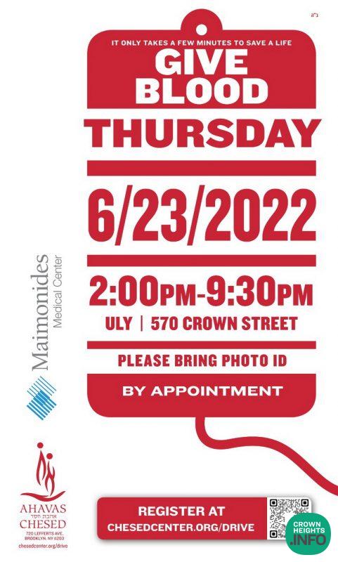 Ahavas Chessed Blood Drive This Thursday in Crown Heights