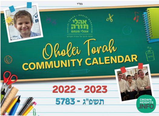We are happy to announce that the 5783 / 2022-23 Oholei Torah Community Calendar is now available free of charge at your local Crown Heights stores and at the Yeshiva’s main office. Parents can also pick up their calendars at the upcoming Open House evenings in the Yeshiva.