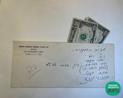 This is an envelope with an included donation from the Rebbe for Rosh Hashana.