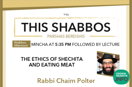 This Shabbos at the BESHT: Rabbi Chaim Polter and his family reside in Crown Heights, where he serves as maggid shiur in Yeshivas Chovevei Torah in Crown Heights since 5780. Before that, he served as maggid shiur in Yeshivas Lubavitch Cincinnati from 5776 until the end of 5779. He will be giving this weeks Shiur on The Ethics of Shechita and Eating Meat.