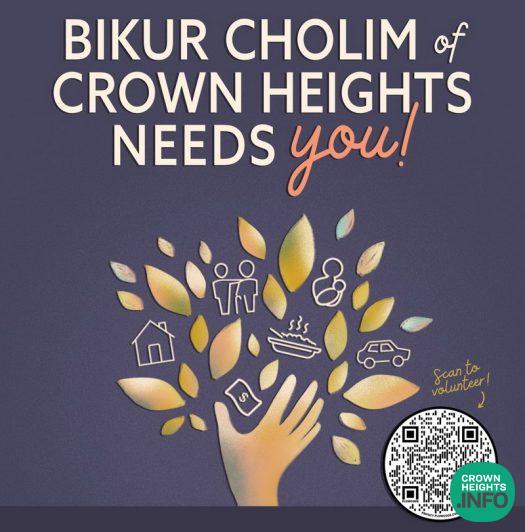 Bikur Cholim of Crown Heights is tremendously grateful to the remarkable men and women who work selflessly and without fanfare to provide assistance and respite to patients throughout the community. However, as the community continues to grow, we have been overwhelmed by the growing number of requests for services. We fear we will no longer be able to meet the community’s needs, ch”v, which would leave patients and their families without the critical care they desperately need. How can we say we don’t have anyone to accompany a patient to life saving treatments? How can we turn away a patient who needs help with her young children because of lack of volunteers?