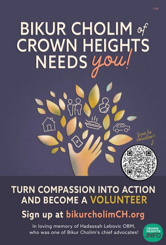 That is why we are turning to you, the Crown Heights community! This is an auspicious time to start volunteering for Bikur Cholim of Crown Heights. Turn your compassion into action and become a volunteer.
