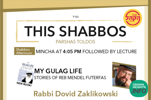 Shabbos at the BESHT: Rabbi Dovid Zaklikowski is the author of over 25 books, including the acclaimed Advice for Life series. He will be giving a guest lecture this week titled My Gulag Life – Stories of Reb Mendel Futerfas.