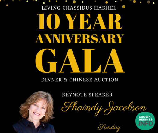Women of Crown Heights are invited to celebrate Living Chassidus’ 10 Year Anniversary on Sunday, January 8 with a Hakhel Gala Dinner & Chinese Auction.