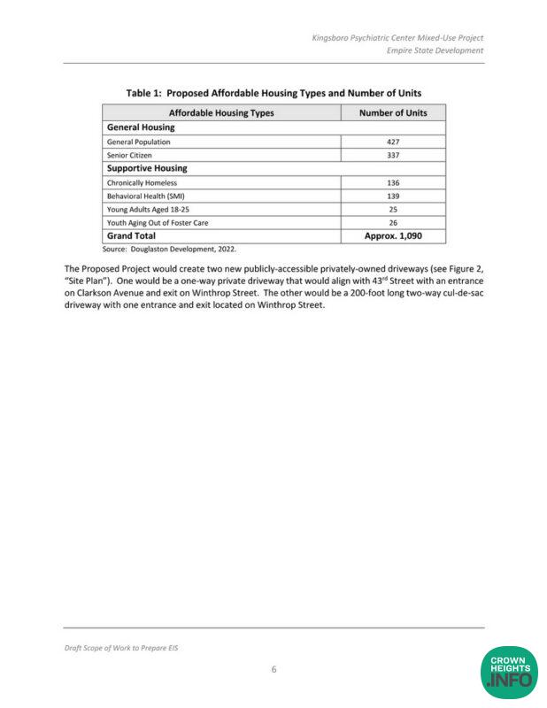 New Homeless Dumping – As per NYS ESD’s Draft Scope, 681 Clarkson aka Kingsboro will have 326 units of new supportive housing units for the formerly homeless or homeless. The two old existing homeless shelters will be rebuilt and contain 364 beds. Add them up, and you have at least 690 homeless beds, or four homeless facilities on just the east side of Albany and Clarkson.[i] [ii] There will be open entrances to 681 Clarkson Ave from Winthrop, not just Clarkson.