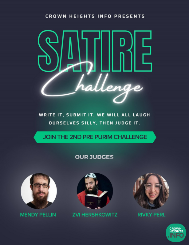 With the launch of CrownHeights.info’s second ever Pre-Purim “Satire Challenge”, challenging you – our readers – to make other people laugh, we have partnered with three of the Orthodox Jewish world’s most well known Comedic Influencers.