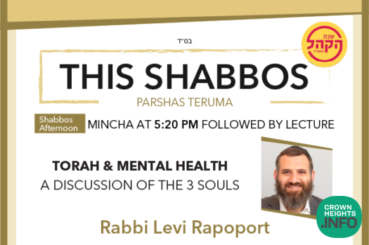 Shabbos at the BESHT: Rabbi Levi Rapoport grew up on Shlichus in Syracuse, NY. He is a licensed psychotherapist working in private practice in Crown Heights and gives a nightly Rambam Shiur at Re’im Ahuvim. He will be giving this week’s shiur on Torah & Mental Health: a discussion of the three souls.