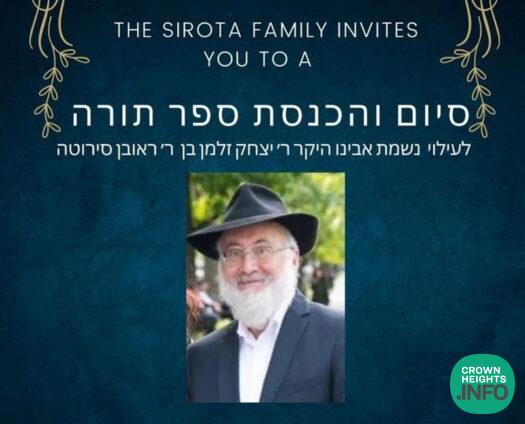 The Sirota Family invites the community to join in the Hachnosas Sefer Torah for their dear Father Izzy Sirota OBM, in his memory and in honor of his first Yartzeit.