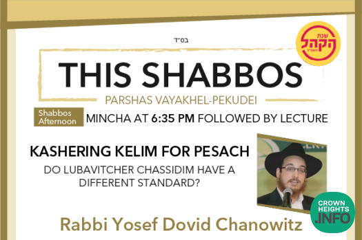 Shabbos at the BESHT: Rabbi Yosef Dovid Chanowitz is a Kosher Field Representative for the OK kosher Certification. He had the privilege to learn and work with many of the leading Rabbonim in the field of kashrus. He received Smicha from the Melbourne Smicha Program under Rabbi Feitel Levin Shlit”a. He will be giving this week’s shiur on Kashering Kelim for pesach: Do Lubavitcher Chassidim have a different standard?