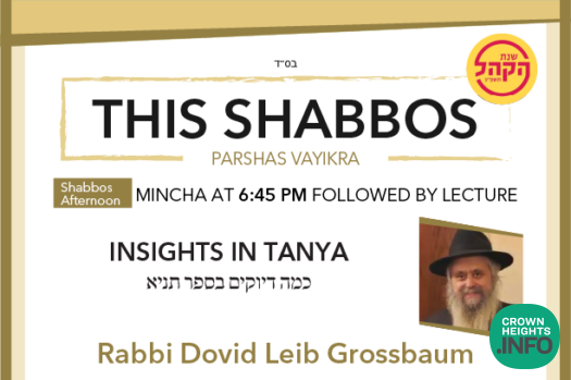 Shabbos at the BESHT: Rabbi Dovid Leib Grossbaum was sent on bochurim shlichus to Miami Beach Yeshiva Gedola in years 1974-1976. He later went on Shlichus as a kollel yungerman to be part of new Kollel in Melbourne Australia in 1979. He was also a Meishiv in Smicha program in Melbourne Smicha in years 1997-2007 and most recently a Meishiv Yoreh Deah in 770 for 5 years 2012-2017. He will be giving this week’s shiur on Insights in Tanya.