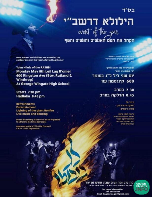 Today, Monday, the Crown Heights community will be joining together for a Shnas Hakhel Bonfire taking place in front of Wingate High School on Kingston Ave.