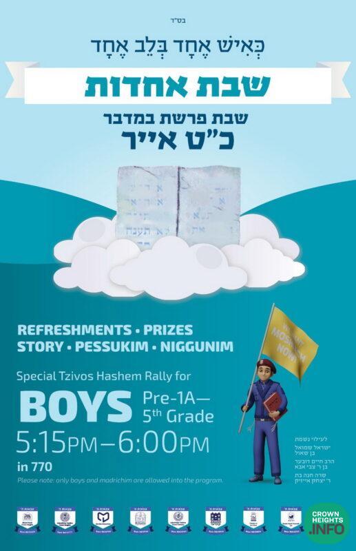 Join the childrens’ Achdus gatherings b’ezras Hashem this Shabbos, Chof Tes Iyar!