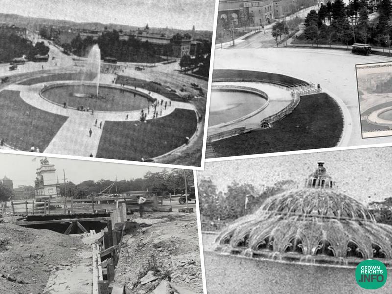 The 1915 construction of the Subway’s IRT Eastern Parkway Line (2, 3, 4, and 5 trains) and BMT Brighton Line (B and Q trains) under the plaza left no room for the required infrastructure for the Electric Fountain, which was removed and replaced with Bailey Fountain in 1932.