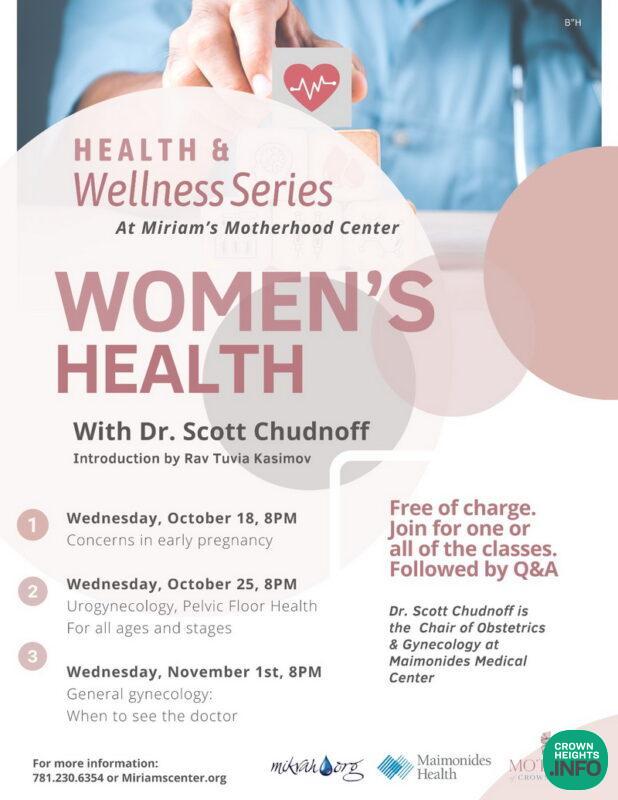 Join Mikvah.org and Mothers of Crown Heights for a three-part lecture series hosted at Miriam’s Motherhood Center, featuring Dr. Scott Chudnoff, Chair of Obstetrics and Gynecology at Maimonides Medical Center.