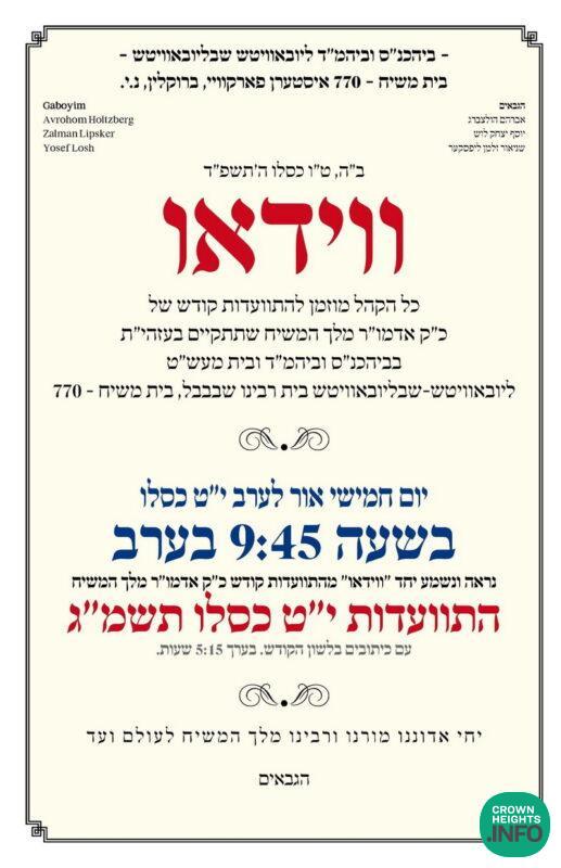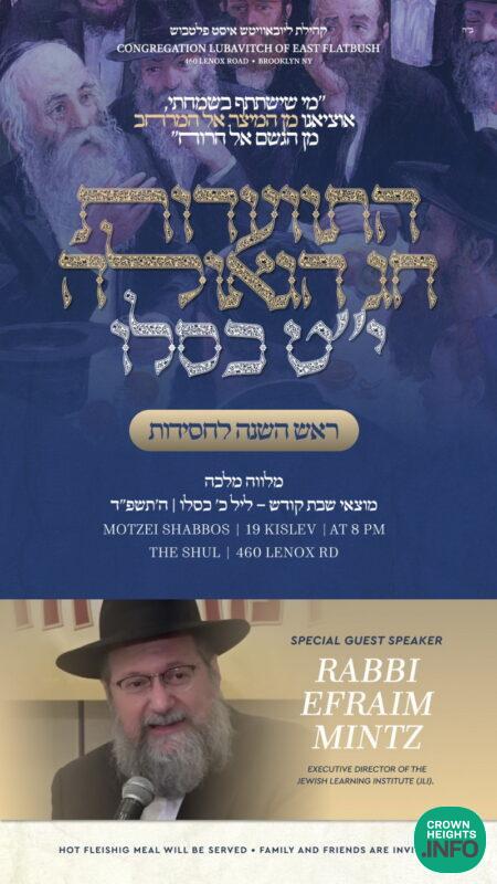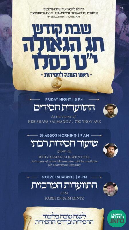 To include your Farbrengen in the list, please email the information to news@crownheights.info, or WhatsApp us at 718-285-8000.