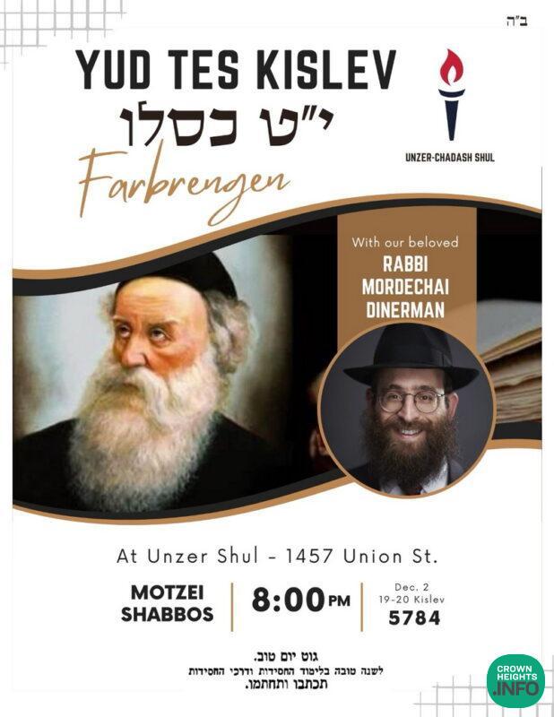 Crown Heights Anash will be joining farbrengens across the Shchunah for Yud Tes Kislev, the Rosh Hashana L’Chassidus. Below you will find a list of local Farbrengens open to the public.