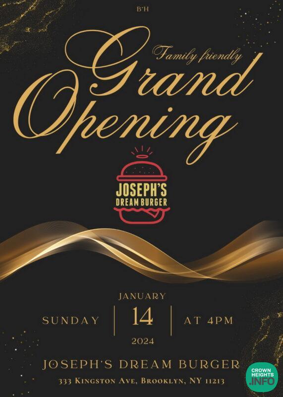Joseph’s Dream Burger is deeply thankful for the Crown Heights community’s overwhelming support and warm welcome. Join us for a family-friendly event on Sunday, January 14, at our location, 333 Kingston Ave. All are welcome to enjoy: