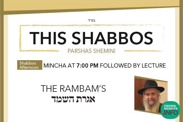 He will be giving this week’s shiur on The Rambam’s Igeres Hasmad.