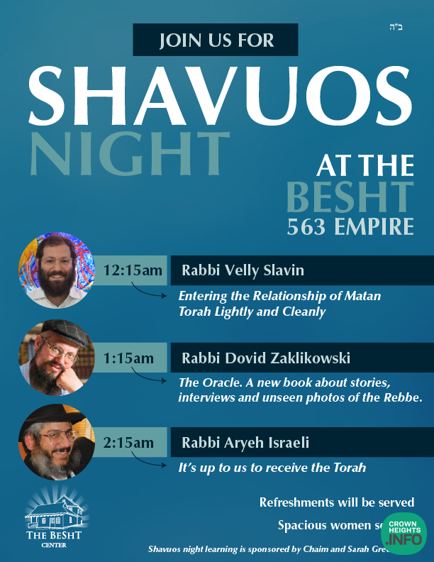 Following the annual custom of learning the first night of Shavuos, The Besht Center has released a list of guest speakers that will be available throughout the night.