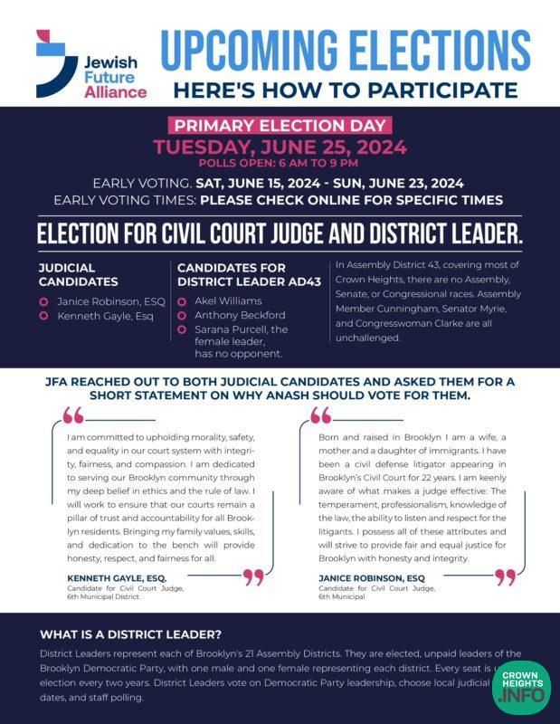 Jewish Future Alliance: Upcoming Election Primary on June 25th