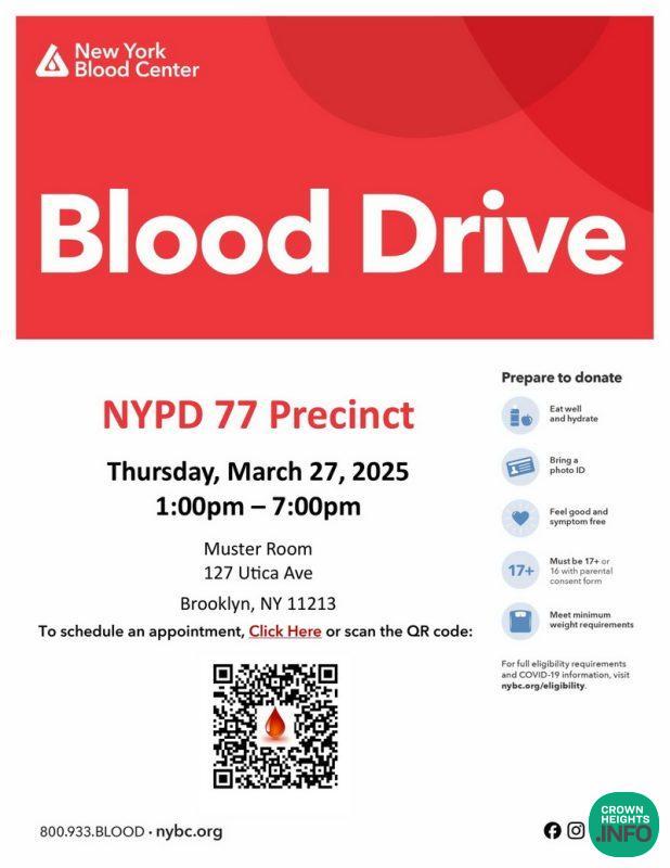 A blood drive has been set to take place at the NYPD’s 77th precinct on Thursday.