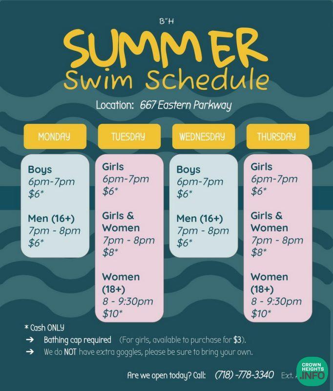 Swim hours and programming are subject to change. For the most accurate and up-to-date information, please call the Oholei Torah Pool Office daily to confirm schedules and availability.